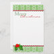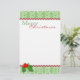 Papeterie élégante de Noël faite dans le blanc, avec un en-tête vintage et un titre de bas de page verts et blancs de motif qui est affilé dans les graphiques qui ressemblent au support rouge de rick. Un brin de houx décore en bas à gauche du Noël de papier et Joyeux en texte rouge et vert, au dessus. Customisez pour ajouter le texte ce ce joli document de lettre de vacances, ou écrivez l'achat de même qu'et la main écrivent votre lettre de Noël.