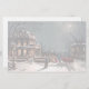 Cette image vintage de Noël montre une scène de lune enneigée tandis que les invités arrivent par cheval et traîneau pour une fête de Noël à la maison victorienne lumineuse faisant de superbes papeterie de vacances.