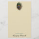 Cette feuille de lettre personnalisée a une reproduction d'une plume de paon colorée par main au dessus. "du bureau de votre nom" est au fond. La plume est vert bleu et le brun et l'arrière - plan est bronzage.
