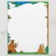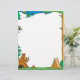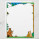 Cette papeterie de vacances présente une scène de camping avec une tente et un gros ours assis sur un rondin de bois en sirotant une boisson et en faisant rôtir des marshmallows sur un feu de camp.