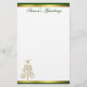 Papier à lettres de fête de vacances, avec des graphiques d'or élégant regardant Noël brodé, le fond, et les rayures de vert et goldtone le dessus et le bas de la page. Bonnes Fêtes en texte vert de manuscrit au dessus. Customisez pour ajouter le texte supplémentaire ou l'utilisation sur votre propre imprimante à la maison. Beau papier pour votre lettre annuelle de Noël.