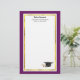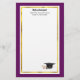 Papeterie avec un arrière - plan violet et un cadre superposé qui a une bordure fausse / simulée de feuille d'or. Illustré avec un chapeau de diplôme et un diplôme en bas. Personnalisez avec votre nom et votre adresse. Simple et élégant.