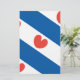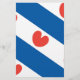 Drapeau de la Frise, une province de la Pays-Bas. Il se compose de bandes diagonales bleues et blanches; dans les bandes blanches sont pompeblêden rouge, feuilles du nénuphar jaune, qui peut rappeler un des coeurs, mais selon les instructions officielles "ne doit pas être en forme de coeur".