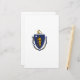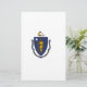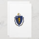 Ce dessin présente le drapeau de l'État du Massachusetts, officiellement connu sous le nom de Commonwealth du Massachusetts. C'est l'État le plus peuplé de la région de la Nouvelle-Angleterre dans le nord-est des États-Unis. Le drapeau contient un sceau bleu sur un arrière - plan blanc ; il porte la devise de l'Etat "Ense Petit Placidam, Sub Libertate Quietem" (qui se traduit par "Par l'épée nous recherchons la paix, mais la paix seulement sous la liberté".