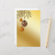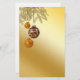 Illustration de Noël précieuse et élégante : branches dorées d'arbres de Noël avec pendaison de boules de Noël sur un arrière - plan doré.