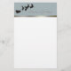 Papier à lettres élégant de vacances, avec un en-tête bleu poussiéreux avec, une silhouette noire de Père Noël dans son traîneau, avec son renne, au dessus. Un ruban de ton d'argent affile l'en-tête et le texte lit des Bonnes Fêtes. Customisez pour ajouter le texte ou l'utilisation sur votre propre imprimante à la maison. Beau papier pour votre lettre annuelle de Noël.