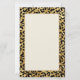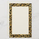 Papier papeterie avec un motif élégant. Des taches de léopard noir exotique sur un arrière - plan d'or. Style sauvage mais élégant. Un cadre rectangle de couleur jaune antique avec une fausse bordure en feuille d'or superposée pour écrire à l'intérieur.