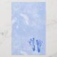 Empreintes de pas mignonnes de bébé sur un fond bleu en pastel.