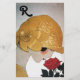 Illustration de haute couture Art Déco française, dynamique et classe. Portrait d'une belle jeune femme portant un casquette doré avec fleur, noir blanc, jaune, couleurs grises .Cool, design moderne et artistique.