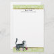 Vert avec des feuilles blancs et des garnitures d'or et un mignon petit chat gris avec des fleurs. Personnalisez avec votre nom, ou nom et adresse de l'entreprise. Le texte, la police, la taille de police, la couleur et le placement sont entièrement personnalisables, alors faites-le vous-même.