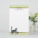 Papeterie Feuilles blancs verts et vêtements de chat gris or
