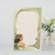 Jolie fille vintage avec une couronne de Holly sur la tête et sur le dos. Jolie papeterie de Noël avec détails et couleurs riches.