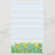 Jolie papeterie bordée décorée de papillons orange vif dans un flax bleu fleuri et prés fleur sauvage lavande peint en aquarelle.