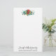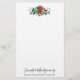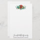 Papier à lettres avec un joli bouquet floral aux couleurs rouge, or et vert.