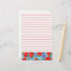 Une papeterie colorée et brillante avec un motif de fraises rouge vif, bleuets, abeilles et fleurs blanches dessinées en stylo et encre à l'aquarelle avec un arrière - plan d'aquarelle bleu ciel. Idéal pour les listes, la rédaction de lettres et la journalisation. Ce design est tiré de mon livre de coloriage intitulé "Lila's Garden : A Cottage Garden Coloring Book" qui peut être trouvé sur Amazon. Vous pouvez le trouver sur plusieurs autres articles dans ma boutique Zazzle aussi!