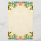 Beau stationnaire qui a une frontière florale des fleurs roses, bleues, jaunes et rouges sur le dessus et le bas du papier.