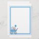 Frontière de point de polka avec le bébé dans un chariot dans un coin. Customisez ce produit avec un nom ou un message pour le rendre vraiment unique