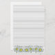 Papier à papeterie recouvert de gris, décoré de fleurs de marguerite Shasta blanches, dessinées dans un stylo noir et de l'encre, avec des centres jaunes vifs peints en aquarelle. Beau papier pour l'écriture de lettre, la journalisation et les notes!