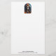 Papier à lettres avec illustration d'un squelette portant une veste à capuchon avec un casquette de sorcière orange sur le dessus. Entouré de citrouilles mignons et éffrayants. Une lune brillante dans le dos avec une seule chauve-souris volant à proximité. Fun automne design Halloween.