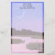 Un tableau aquarelle d'une chasse au Grand Héron bleu dans un marais humide sous une lune croissant orne cette stationnaire personnalisable!