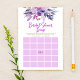 C'est un jeu de Fête des mariées de Bingo à thème fleuri violet. *Fête des mariées Bingo - Les invités rempliront les blancs avec les cadeaux qu'ils pensent que la mariée recevra. Quand la mariée à être ouvre un cadeau qui est une de leurs suppositions, ils le marqueront avec un X. Quand ils auront 5 dans une rangée, ils Bingo! Le premier à obtenir 5 dans une rangée, gagne ! idées de douche nuptiale, jeux roses, activités, activité