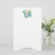 Papier à lettres avec une adorable illustration. Un ours douillet aux étoiles et aux étincelles dans sa fourrure. À côté d'un sapin de Noël. Couleur pastel bleu-vert. Whimsical et mignon.