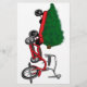 Livraison d'arbres de Noël dans un petit wagon rouge, style tricycle. Très joli cadeau rétro.