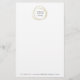 Un élégant papier à lettres pour usage personnel ou professionnel présente votre nom ou nom d'entreprise à l'intérieur d'un faux élément abstrait cercle en feuille d'or. Personnalisez avec une ligne de texte supplémentaire le long du bas ; avec le numéro de téléphone et l'adresse e-mail.