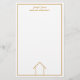 Ces fournitures de bureau modernes pour agent immobilier sont simples et chic avec votre nom et les informations de votre entreprise. Il présente un dessin en ligne chic et minimaliste doré et blanc d'une maison. Utilisez ce papier à lettres contemporain pour la correspondance immobilière avec les clients et d'autres agents immobiliers.