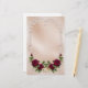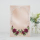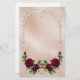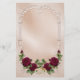 Subtil et élégant en satin et damas rose rose doux, avec bordure défilée, roses rouges bordeaux luxuriantes et anneaux mariages or. Disponible également en beige.