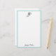 Papier blanc de papeterie personnalisé par modèle moderne simple de vert bleu de nom de monogramme de manuscrit de main.