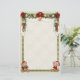 Garland luxuriant et les Drapes agglutinés avec deux Nounours de Noël mignons habillés dans leur finition de vacances. Un petit ours enveloppe un cadeau et un petit ours tient un biscuit en pain d'épices. Arrière - plan légèrement texturé.