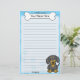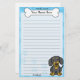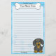 Teckel de Kawaii d'amusement avec une race de chien de bande dessinée dans le coin inférieur droit. La partie supérieure peut être immédiatement personnalisée avec votre nom à l'intérieur du grand os de chienchien. L'arrière - plan de frontière et de papier sont bleu. Nous avons ce chien dans la version enduite rouge aussi !