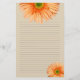 Gerbera daisy bordé papier d'écriture. Couleur beige avec fleurs orange.