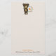 Papeterie personnalisée. Conçu avec une jolie illustration d'un ours brun caricaturé tenant une marguerite jaune. Entouré d'une couronne fleurie décorative avec fleurs, feuilles, sprigs et coeurs. Jeu de couleurs d'automne.