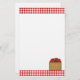 Cette papeterie à paniers de fraises est munie d'un panier de fraises dessiné à la souris avec en vichy chèque rouge et blanc.
