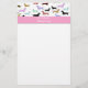 Cette papeterie amusante présente de petits chiens de dachshund colorés au sommet. Un graphisme d'un ruban rose coule en haut en attendant le texte customisé.