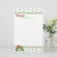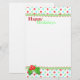 Papeterie de Noël colorée en blanc, avec un amusant en-tête et pied de motif de pois rouge, vert clair et turquoise, bordée de graphismes qui ressemblent à un rack de rick vert. Une branche de saint orne le bas gauche du papier et Joyeuses fêtes en rouge et vert, en haut. Customisez d'ajouter texte ce joli papier de lettre de vacances, ou écrire acheter tel quel et écrire à la main votre lettre de Noël.