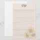 Tournesol, papier d'écriture doublé, avec des initiales monographiques en haut. Personnalisez avec trois initiales en gris foncé cursif, au sommet de la papeterie florale avec des lignes.