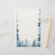 Ce joli papier de note présente une délicate aquarelle peinte à la main illustrant des pins déchirés et enneigés debout contre un ciel d'hiver bleu doux. Le paysage serein de verdures bleues glacées et de flocons de neige en chute douce évoque une atmosphère boisée d'hiver calme et rustique. Idéal pour écrire des lettres, des listes de choses à faire ou des notes saisonnières, ce design reflète à merveille l'esprit paisible et festif de la saison glaciale des fêtes d'hiver.