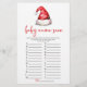 fête de noëljeu de baby showerfille garçon unisexeneutreactivitésjeux amusantsrace du nom de bébéjeu de devinettesrouge blancsanta claus casquette