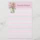 Jolie papeterie personnalisée, faite dans un motif rose et blanc bordé. Un en-tête de pois rose et blanc est décoré d'un pot de mason coloré avec des lys roses, sur la gauche et le texte personnalisé rose foncé. Personnalisez le texte en fonction de vos besoins. Fait aussi un joli cadeau.