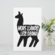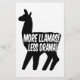 Plus de lamas ! Moins de drame ! Design noir et blanc. Texte de style comique à l'intérieur d'une silhouette d'un lama.
