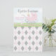 Un petit gardien mignon avec un bébé dans un chariot vintage rose sur une pelouse gazonnée, garni d'oiseaux roses et d'un lapin lapin rose, contre un ciel bleu pastel avec des nuages blancs bouffants. Le nom de l’enfant est placé en haut dans les grandes lettres décoratives, tandis que la date de naissance et l’heure de naissance, la longueur et le poids de l’enfant sont indiqués en bas et en bas dans les lettres roses. Un souvenir parfait pour la nouvelle petite fille. Tout cela sur un arrière - plan Jacquard rose, noir et blanc (diamant). Une excellente idée cadeau pour les nouveaux parents.