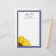 Écrivez une note ou une lettre personnelle en utilisant ce papier à lettres tournesol de ce trimestre. Le tournesol est entouré d'une bordure en damier qui lui confère un design classique. Customisez votre papeterie en ajoutant votre nom et adresse ou tout texte que vous choisissez. N’oubliez pas de commander le timbre-poste de coordination.