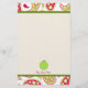 Papeterie comportant une frontière rose et verte de Paisley au-dessus du dessus et du bas avec l'équilibre vert. Personnalisez avec votre nom en bas sous l'illustration de la pomme verte.