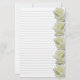 Papeterie personnelle aux roses blanches avec lignes. Chaque feuille est blanche avec des lignes grises et une bordure de roses blanches sur le côté droit. Reverse est solide blanc cassé. Le papier comporte des mises à niveau optionnelles.