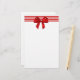 Papier à lettres de fête de vacances, avec le fonctionnement rouge de rayures horizontal au dessus de la papeterie, et un grand arc assez rouge. Customisez pour ajouter le texte supplémentaire ou l'utilisation sur votre propre imprimante à la maison. Beau papier pour votre lettre annuelle de Noël.