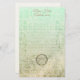 Écriture victorienne et parchemin floral stationnaire dans de jolies couleurs crème, vert menthe et or. Embellisté avec un cadre de travail de défilement victorien pour votre initiale et modèle en haut pour votre nom et adresse. Très élégant.