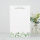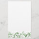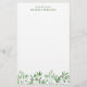 Papeterie apaisante avec verdure dans les tons doux de vert. En haut, à partir du bureau de et votre nom en lettres vertes élégantes. En bas, une rangée asymétrique de verdure dans les tons verts doux pour un look apaisant ou nourrissant. Papeterie verte personnalisée avec votre nom. Écrivez vos lettres sur ce papier à lettres personnalisé avec votre nom et de jolies brindilles feuillues.